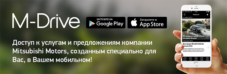 Вход в личный кабинет интернет сервиса “M-Drive” осуществляется на официальном сайте http://www.mitsubishi-motors.ru/, а также на сайтах официальных дилеров Mitsubishi. Сервис также доступен в виде мобильного приложения “M-Drive” для смартфонов системы Android и iOS.