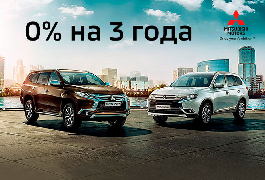 Реклама. Официальный дилер автомобилей Mitsubishi * Воплощение твоих амбиций. 1.Указанная маркетинговая ставка 0% не равна процентной ставке по кредиту, предоставляемому АО МС Банк Рус (далее – «Банк»), и применяется при первоначальном взносе от 50% от цены приобретаемого а/м. В этом случае затраты покупателя на финансирование кредита (условия кредитования указаны ниже) обеспечиваются за счет соразмерного снижения цены автомобиля. Предложение действует при оформлении полиса КАСКО на полную стоимость кредита, оформлении услуги «Защита платежей» (страхование жизни и здоровья) в любых страховых компаниях из перечня, размещенного на официальном сайте Банка http://www.mcbankrus.ru/mitsubishi-motors-finance/insurance/second.php. Условия кредитования на покупку а/м Mitsubishi Outlander и Mitsubishi Pajero Sport: Банк-кредитор: АО МС Банк Рус (лицензия ЦБ РФ № 2789). Мин./макс. сумма кредита — 150 000 руб./99,99% от стоимости а/м, валюта — рубли РФ. Первоначальный взнос от 20% от цены а/м, срок кредита — 36 мес., процентная ставка в кредитном договоре — 7,9% на а/м Mitsubishi Outlander с объемом двигателя 2.4 и 3.0, 8,9% на а/м Mitsubishi Outlander с объемом двигателя 2.0 и Mitsubishi Pajero Sport; при оформлении услуги «Защита платежей» (страхования жизни и здоровья) с любой страховой компанией из перечня, размещенного на официальном сайте Банка-кредитора http://www.mcbankrus.ru/mitsubishi-motors-finance/insurance/second.php и при страховании по рискам ущерб и угон автомобиля (КАСКО) на полную стоимость автомобиля; выгодоприобретатель Банк-кредитор по рискам угон, утрата/полная гибель в размере непогашенной задолженности (если Банк не является агентом страховщика). Без услуги «Защита платежей» ставка увеличивается на 5%, без оформления полиса КАСКО ставка увеличивается на 2%. Обеспечение по кредиту — залог приобретаемого автомобиля. Предложение действует с 24.08.2018 г. по 30.09.2018 г., носит информационный характер, не является публичной офертой.